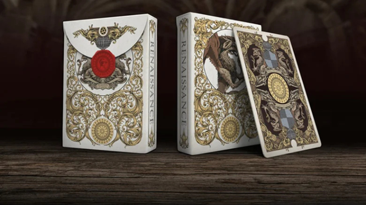 Les jeux sont entièrement personnalisés et illustrés à la main avec une grande attention portée aux détails. Les cartes ont un aspect et un toucher vintage, des cours à sens unique aux magnifiques as, en passant par les indices saisissants et le fond unique et subtil représentant les armoiries de chaque couleur. Ces nouveaux jeux ont été créés pour montrer toute la beauté de la Renaissance et s’inspirent du grand artiste Diego Velásquez.