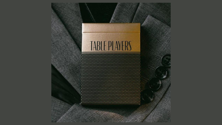 - Les cartes à jouer Table Players Vol. 6 sont présentées dans un étui lisse doré et texturé.