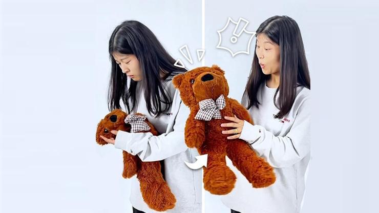 En un instant, le magicien fait apparaître un ours en peluche depuis une boîte, un sac ou tout autre contenant vide.