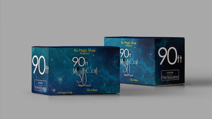 90ft Mouth Coil est une nouvelle génération de bobines buccales, créée par Ra El Mago et Metusen. Chacune mesure 27 mètres de long et est de très haute qualité. 90ft Mouth Coil utilise les principes de l’origami pour permettre une excellente performance lorsque vous tirez la bobine de votre bouche.