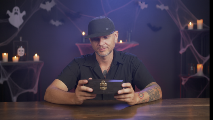 Spirit Coffin est le moyen parfait d’ajouter une révélation effrayante. Et vous ne devez pas vous limiter à un nom : cela peut être le mot pensé dans un book test, le numéro de série d’un billet, les possibilités sont infinies. Le cercueil fait tout le travail pour vous. Il suffit de fermer le couvercle, et la révélation est prête. Nathan Kranzo vous enseigne non seulement plusieurs de ses routines préférées, mais aussi des méthodes pour obtenir des informations avant même que le tour ne commence, afin d’obtenir des réactions monstrueuses. Ce petit cercueil instaure immédiatement une atmosphère propice à la connexion entre vous, vos spectateurs et le grand au-delà.