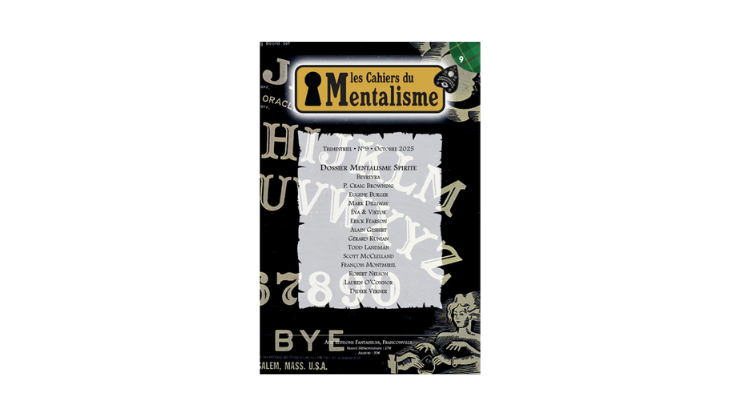 La première revue francophone entièrement consacrée au Mentalisme ! Chaque trimestre, 100 pages tout en couleur dans une revue luxueuse à reliure cousue. Une revue unique en son genre à laquelle contribuent les meilleurs mentalistes, tous pays confondus. Textes 100% inédits en français. Directeur de publication : François Montmirel, ancien responsable et cofondateur d’Imagik. Rédacteur-en-chef : Erick Fearson.