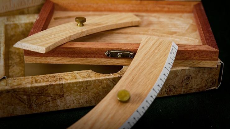Le magicien présente deux règles d’écolier en bois :