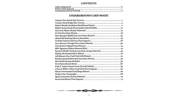 Inner Sanctum contient d’autres tours de magie originaux de Tom Gagnon, ainsi que des tours de magie en close-up de certains des meilleurs magiciens, notamment Jack Carpenter, Roger Klause, Ed Marlo, Dai Vernon, Troy Hooser, Bernard Bilis et bien d’autres. (Voir l’image de la table des matières pour plus de détails).