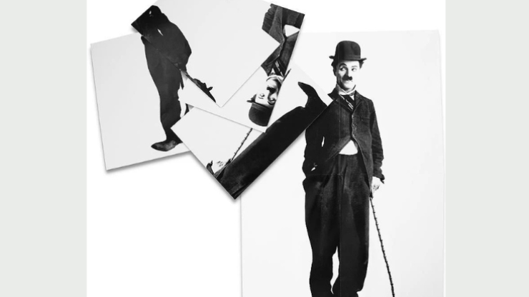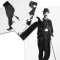 Le magicien montre quelques pièces d’un poster du grand Charlie Chaplin.