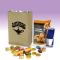 Après avoir montré un sac en papier vide sous tous les angles, vous lancez une formule magique… et, à la surprise générale, une multitude de friandises — et même une vraie boisson en canette — en sortent !